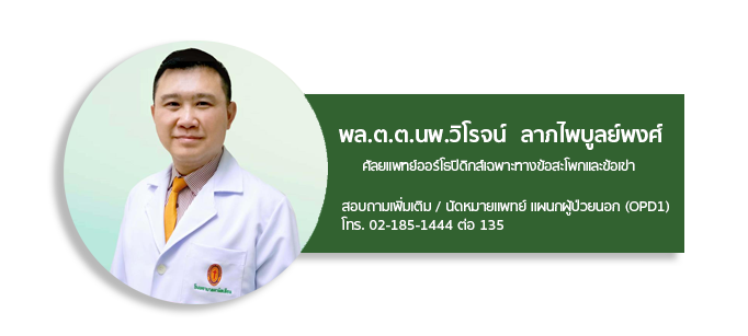 ให้ความรู้โดย : นายแพทย์วิโรจน์ ลาภไพบูลย์พงศ์ (แพทย์เฉพาะทางกระดูกและข้อ)