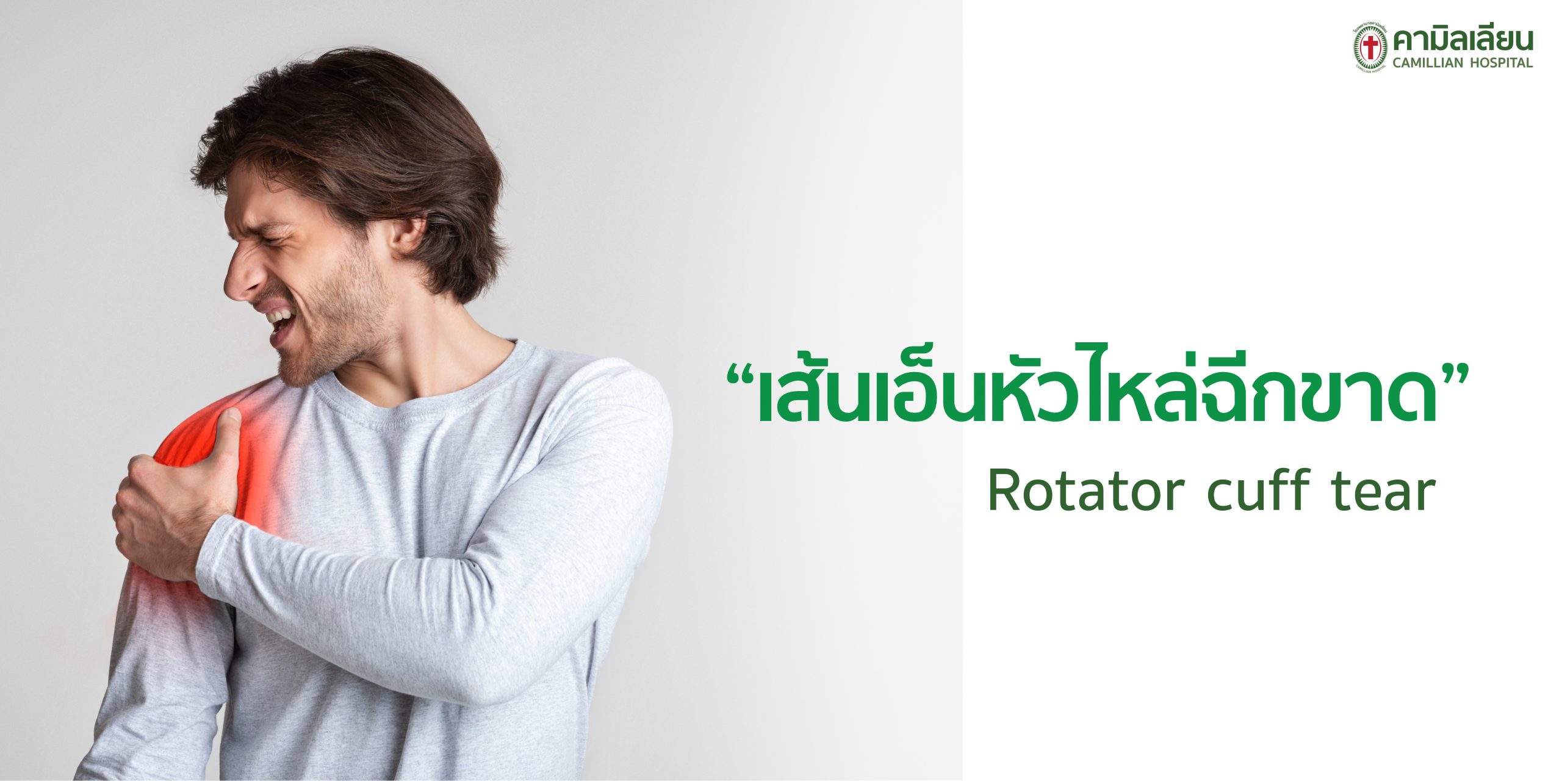 เส้นเอ็นหัวไหล่ฉีกขาด (Rotator cuff tear) เป็นการบาดเจ็บที่เกิดขึ้นกับเส้นเอ็นที่เชื่อมกล้ามเนื้อ Rotator Cuff กับกระดูกหัวไหล่ การบาดเจ็บนี้สามารถเกิดขึ้นได้จากหลายสาเหตุ เช่น การใช้งานหัวไหล่หนักเกินไป การบาดเจ็บจากอุบัติเหตุ หรือการเสื่อมสภาพของเส้นเอ็นตามอายุ