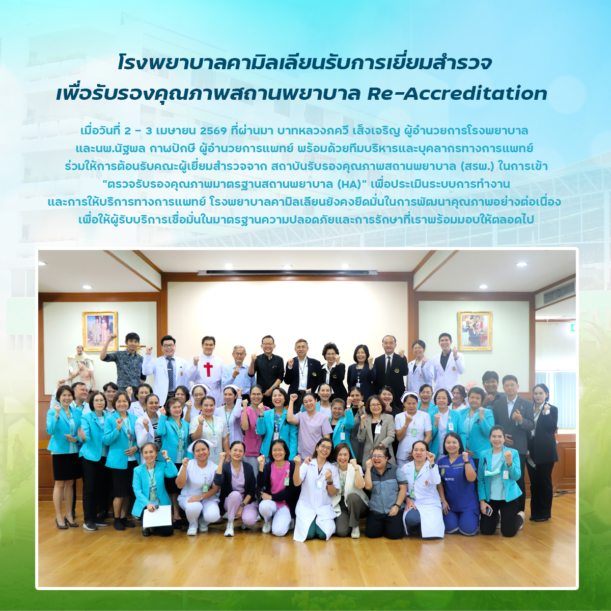 โรงพยาบาลคามิลเลียน รับการเยี่ยมสำรวจเพื่อรับรองคุณภาพสถานพยาบาล Re-Accreditation ครั้งที่ 5